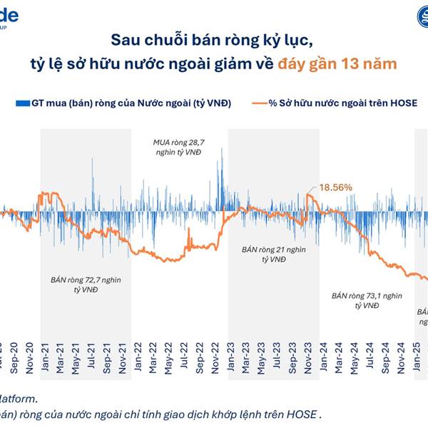 - Khối ngoại giảm sở hữu kỷ lục: Tỷ lệ sở hữu nước ngoài trên HoSE chỉ còn 15,61% (~46 tỷ USD) (So với quy mô vố...Thêm