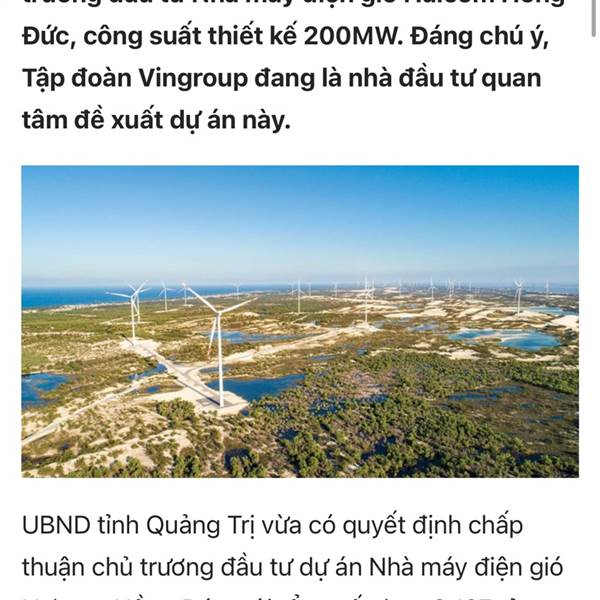 Doanh nghiệp này có cái hay là có chí hướng Giống cách Tập đoàn Vingroup làm, hài hoà lợi ích, cùng nhau phát triển Dự án điện gió Quảng Trị Vốn lớn, Bác Vượng cần dự án như này triển khai nhanh, cho m...Thêm