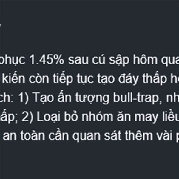16/3 có đăng bài dự báo VIC có thể rơi về 100. Hiện đã rơi về 135. Nếu về 100, sẽ khiến VNINDEX bay mất khoảng 48 điểm, đồng thời tạo hiệu ứng tiêu cực, rất dễ khiến VNINDEX mất mốc 1600 (tôi cũng đã ...Thêm