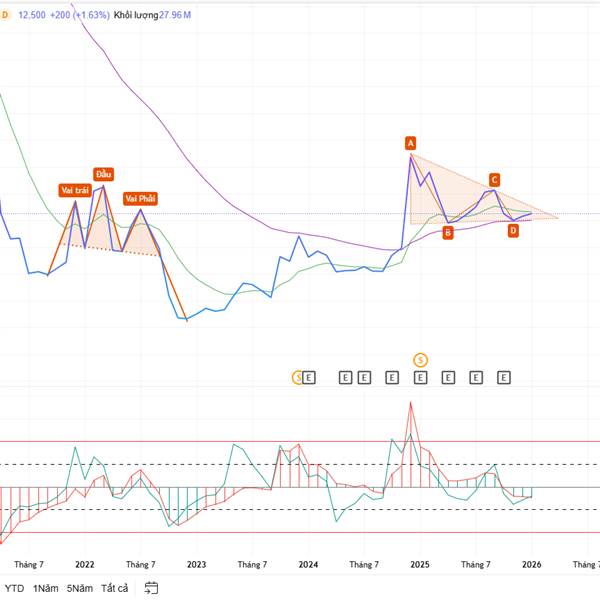 YEG khung nến tháng giá đang Sideway về cuối tam giác. Giai đoạn này giá sẽ giật lên giật xuống liên tục với biên độ nhỏ. Nếu anh em trade lướt T+ thì chắc chắn không có ăn đâu, có khi còn dính stoplo...Thêm