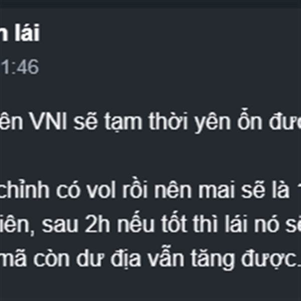 Phiên hwa 4 con VIN sàn hết, VNI -30đ, mà TT gần như ko có bán tháo, các mã chỉ giảm tầm ~1%, test nhẹ lại xíu với vol cực thấp. Chắc chắn đó phải là 1 phiên tích cực, chứ như bt thì chắc mỗi mã cũng ...Thêm