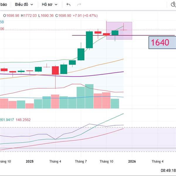 Monthly chart: RSI reached 75.3, VNIndex turned to adjust (very similar to the daily chart on 7/1/2021 when RSI also reached 75.0, Vnindex then adjusted down by 12% before b...Thêm