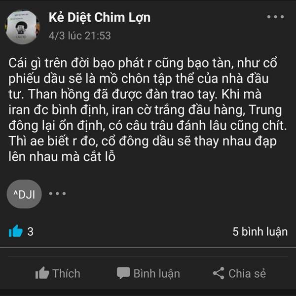 Đầu tư suốt ngày xem DJ v câc còn giời. Hôm qua bảo DJ giảm, dầu tăng. tT sập. Nay sập mỗi dầu. Kaka