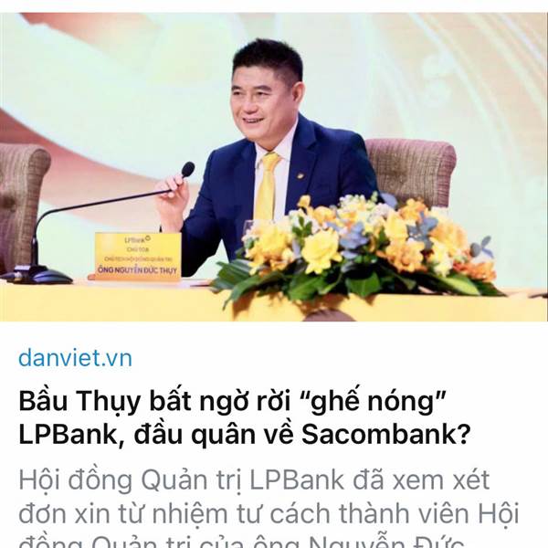 Ngày 23/12 Ông Nguyễn Đức Thụy – Chủ tịch Hội đồng Quản trị (HĐQT) Ngân hàng TMCP Lộc Phát Việt Nam (LPBank, mã cổ...Thêm