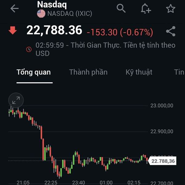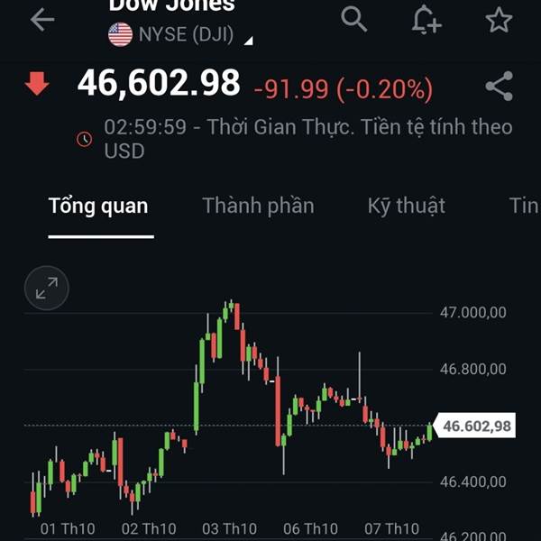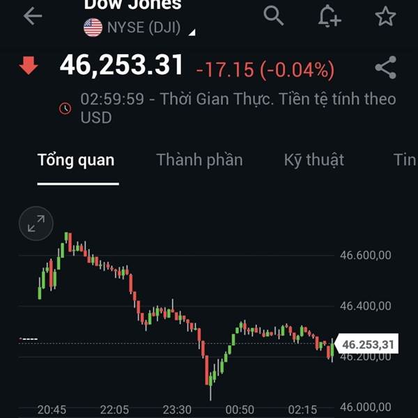 Sau một phiên giao dịch lập đỉnh lịch sử, DJ quay đầu giảm 273đ(-0.59%). Mức giảm nhẹ nhàng này nhờ lực đỡ của các cổ phiếu công nghệ Apple, Microsoft, Nvidia. Cũng chính nhờ nhóm này đã giúp Nasdaq t...Thêm