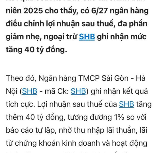 Chỉ có SHB là ngân hàng hiếm hoi tăng lãi khủng 40 tỷ sau khi kiểm tra soát xét , chứng tỏ ngân hàng làm ăn thật , ...Thêm