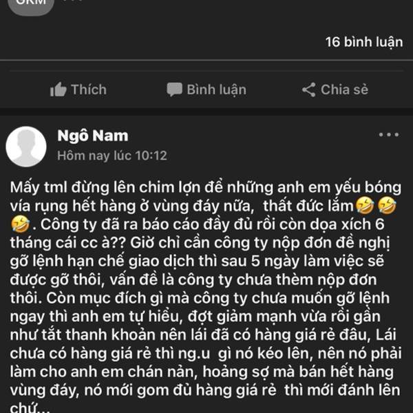 Vừa rồi nó tháo xích là tháo cái ngừng giao dịch chứ ko phải tháo xích cái hạn chế giao dịch .