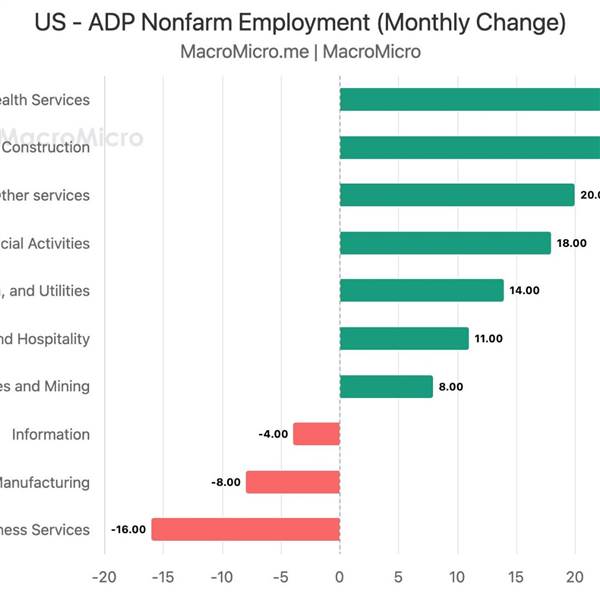 Báo cáo của ADP: Các ngành sản xuất hàng hóa có mức tăng khiêm tốn là 27 nghìn việc làm, trong khi các ngành cung cấp dịch vụ tă...Thêm