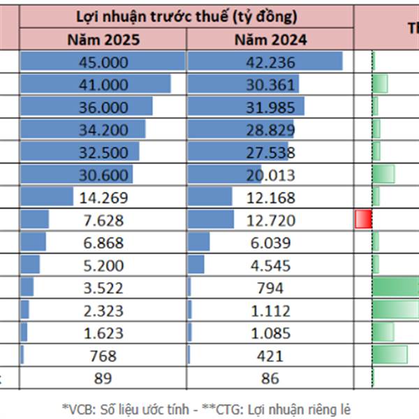 Lợi Nhuận Ngân Hàng 2025: Khi Vua Vẫn Tại Vị, Nhưng Á Quân Đang Tăng Tốc Đáng Gờm! Thị trường chiều 23/01/2026: Số liệu lợi nhuận cả năm 2025 của các nhà băng đã lộ diện, vẽ nên một bức tranh kẻ cười n...Thêm