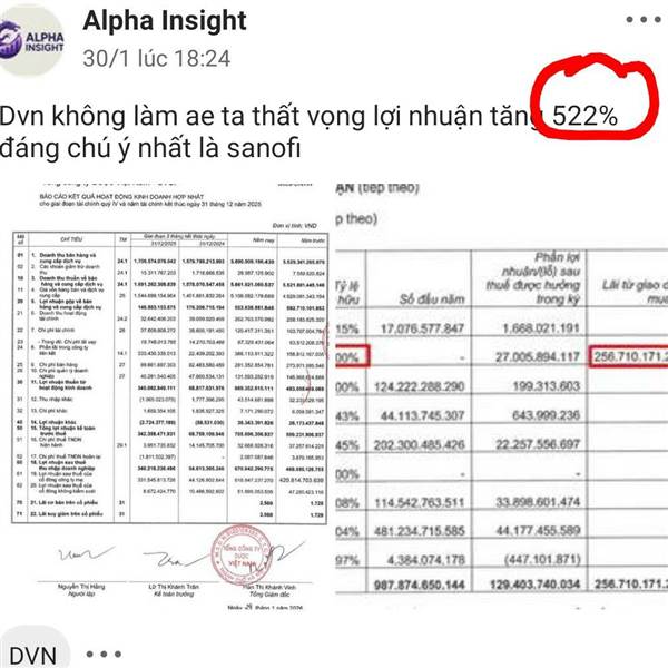 Alpha Insight Ln quý 4/2025 giảm so với Q4/2024 chẳng qua ghi nhận 1 bút toán từ công ty liên kết nên LN tăng.vậy mà thằng Alpha insigh giật tít thấy ghê.cũng đúng do nó nắm 185k con ghẻ này.con chim lợn Alpha insi...Thêm
