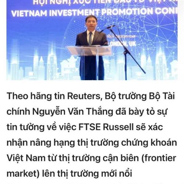 Thị trường chứng khoán Việt Nam đang đứng trước một bước ngoặt lịch sử: tiến gần đến nâng hạng từ thị trường cận biên (Frontier Mar...Thêm