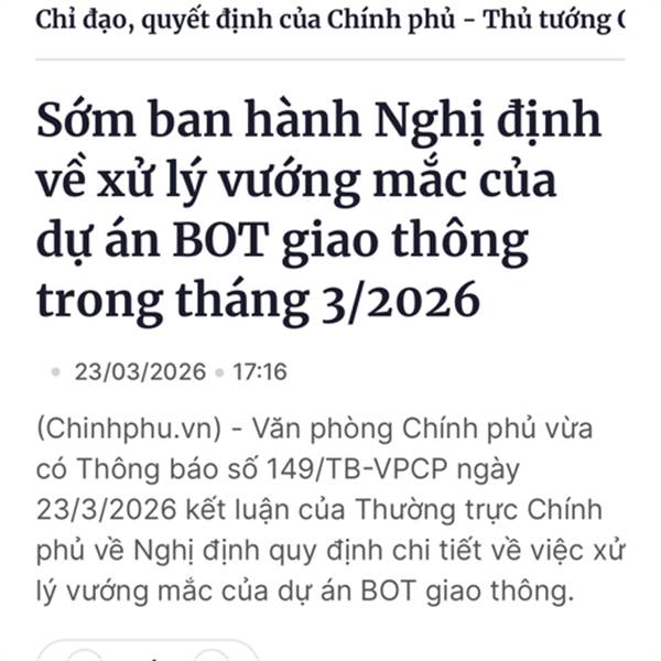 Việc xây dựng, hoàn thiện Nghị định quy định chi tiết về việc xử lý vướng mắc của các dự án BOT giao thông đang đi đến những bước cuối cùng ...Thêm