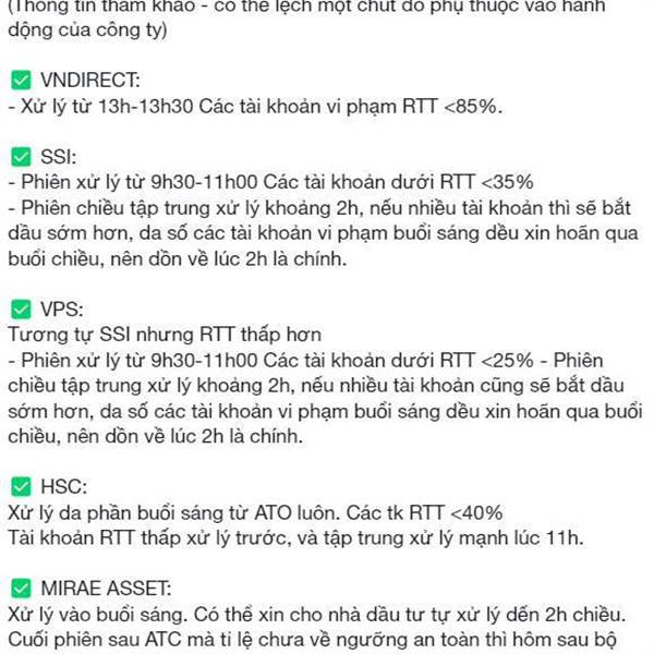 THỜI GIAN CALL MARGIN CỦA 1 SỐ CTCK