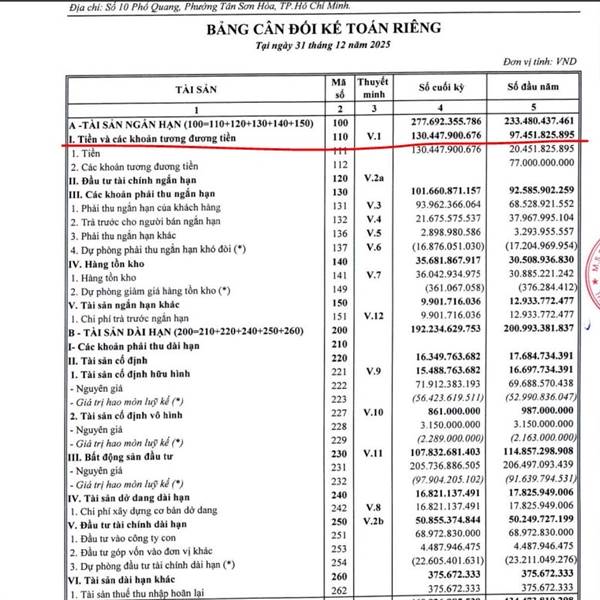 Định giá rẻ vốn hoá hơn 300 tỷ tiền mặt 130 tỷ
