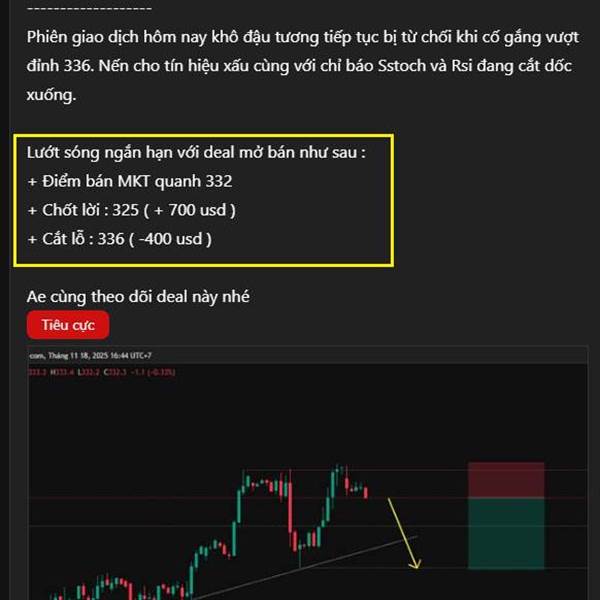 Không chỉ sản phẩm Dầu đậu tương cho lợi nhuận tốt mà với lệnh giao dịch Khô đậu tương cũng đang cho Lợi nhuận mở 200 usd cho 1 hợp đồng bán.