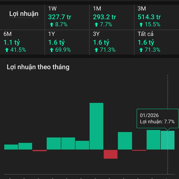 Hiệu quả đầu tư tháng 1-2026 là 7.7% tương ứng 293 triệu đồng? AE đầu tư hiệu quả chứ???