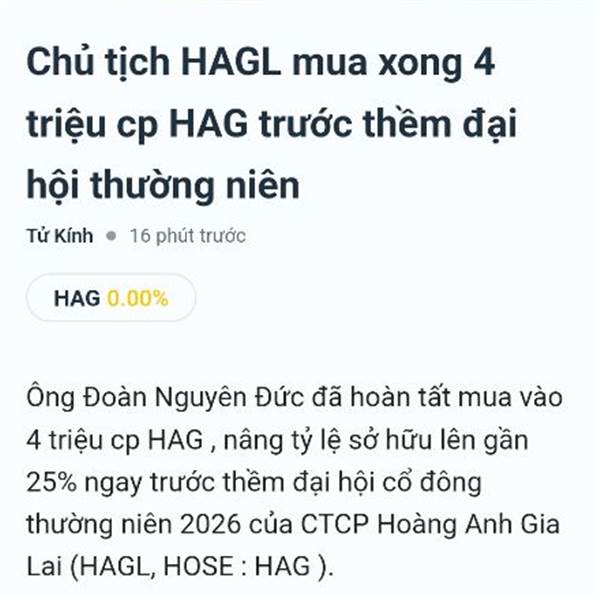 Những dòng tus này nhắc nhở tôi rằng cp tăng trưởng theo từng năm chứ kp từng D từng W ,từng cây nến... 2 năm trước tôi mua cp HAG với giá 10.350 vnđ giá hiện tại là 15k vậy tính theo thời gian thì cp...Thêm