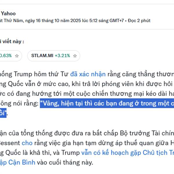 Tổng thống Trump hôm thứ Tư đã xác nhận rằng căng thẳng thương mại với Trung Quốc vẫn ở mức cao: "Vâng, hiện tại thì các bạn đang ở trong một cuộc chiến rồi"