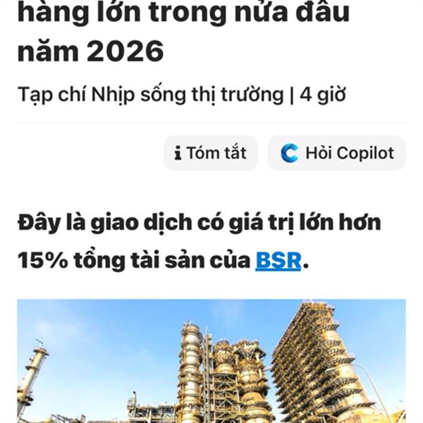 tin hơi hot đã ra rồi. còn tin cực hót ae chờ thêm chút nhé. quý 1/2026 sẽ là tin đưa BSR lên 3 con số.
