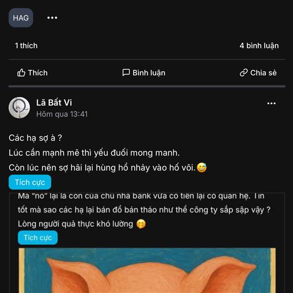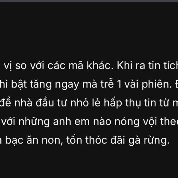 Mới ngủ trưa dậy mà thấy các hạ lơ ngơ như bò lạc mẹ. Sao cứ phải tím tái mới chịu, mỗi phiên tăng 3-4% chẳng hay hơn sao. Đằng nào thì 18+ ta mới bán, ôm chặt vào sợ gì bão lũ 😍