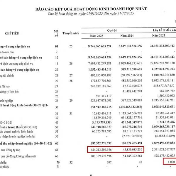 Lợi nhuận gộp 2025: 4.327 nghìn tỷ (tăng rất mạnh so với 2024).