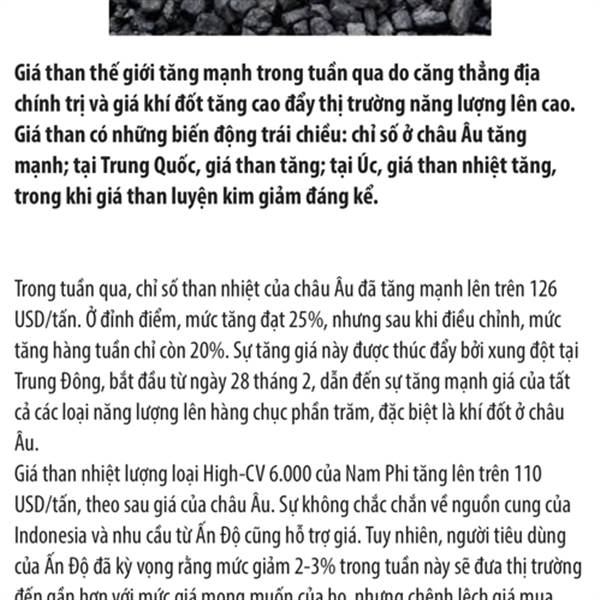Giá dầu tăng chỉ là phụ, giúp củng cố niềm tin cho giá than tăng bền v...Thêm