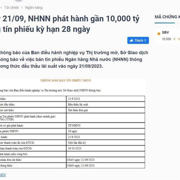HIỂU RÕ SỰ KIỆN: SBV BÁN 20,000 TỶ TÍN PHIẾU Đây chắc hẳn là sự kiện được rất nhiều NĐT quan tâm trong tuần qua. Tôi xin gửi phân tích về sự kiện này tới các anh chị NĐT.
