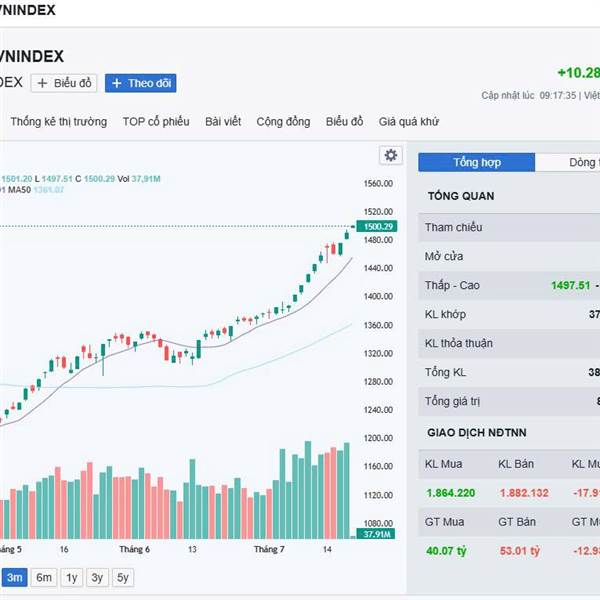 VNINDEX chạm 1500 trong phiên,