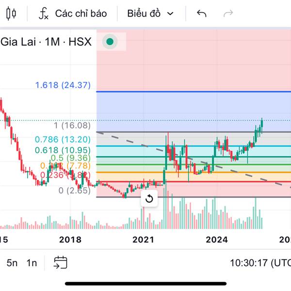 Vượt đỉnh 1 năm thì ít nhất 24 mới chốt ace nhé, xa hơn là giá 37. Mục tiêu cho những ai kiên định, bớt chửi bới đi mà hãy nhìn vào phân tích kỹ thuật! Đầu tư ai lại dùng cái mõn để kiếm lợi nhuận!