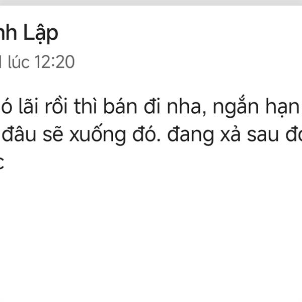 Bác nào có lãi rồi thì bán đi nha, ngắn hạn k lên được nữa đâu sẽ xuống đó. đang xả sau đợi tăng tuần trước
