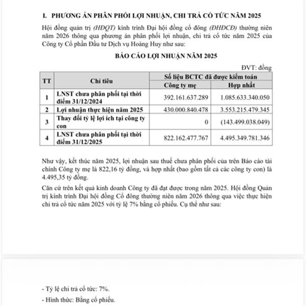 Chia cổ tức 7%cp thôi nhưng kế hoạch năm 2026 khá đẹp, dự kiến doanh thu và ln là 3000 tỷ tăng 336%, ln 700 tăng 162% so với 2025