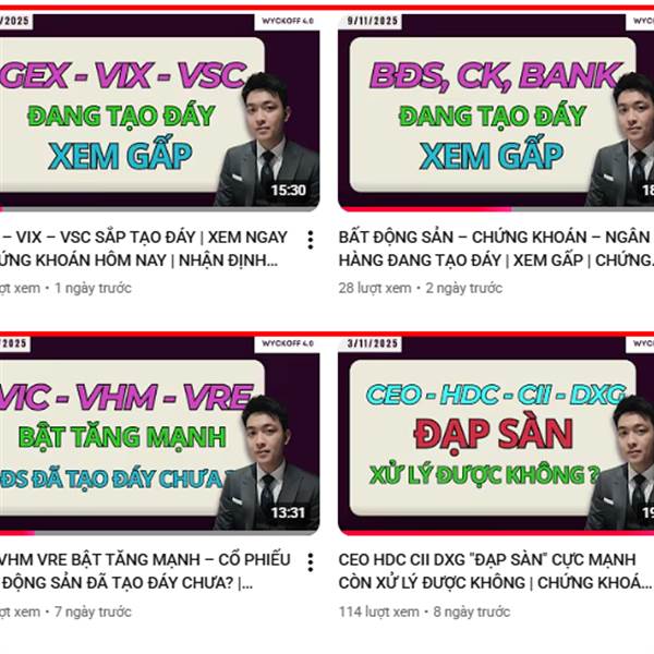 KÊNH YOUTUBE ĐÁNG XEM NHẤT THỜI ĐIỂM HIỆN TẠI 13/10 : Chia sẻ về VIC,VHM,VRE và thị trường tạo đỉnh, giữ tiền nửa cuối tháng 10, kiếm tiền từ tháng 11 10-11-12/11: Nói Bank,BĐS,CK,VIX,GEX,VRE đang tạo đ...Thêm