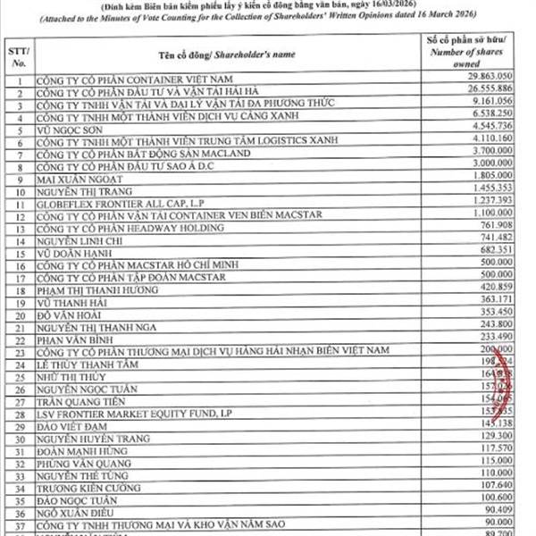 Chúc mừng cổ đông VOS