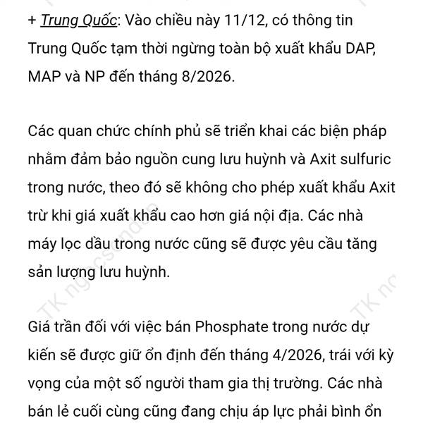 Các thị trường xuất khẩu chính của phân bón DAP Việt Nam không phải là Mỹ mà là các nước như Hàn Quốc, Indonesia, Thái Lan, Philippines...Thêm