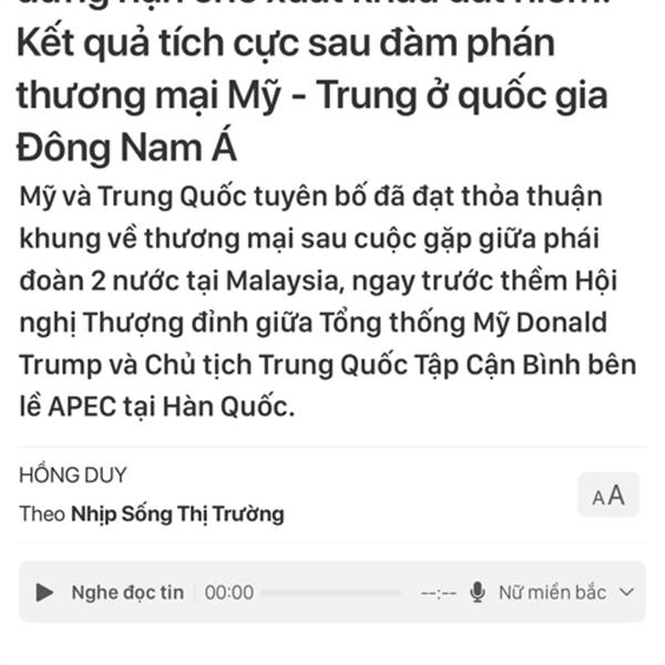 (VNF) - Trung Quốc và Mỹ đã nhất trí về một thỏa thuận khung sơ bộ vào ngày 26/10 sau 2 ngày đàm phán tại Kuala Lumpur (Malaysia), báo hiệu sự hạ nhiệt căng thẳng trước thềm cuộc gặp tiềm năng giữa Tổng thống Mỹ Donald Trump và Chủ tịch Trung Quốc Tập Cận Bình vào cuối tuần.