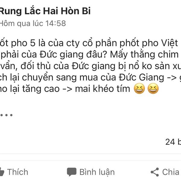 Đ.m phốt pho 5 là của cty cổ phần phốt pho Việt Nam chứ có phải của Đức giang đâu? Mấy thằng chim lợn hù doạ vớ vẩn, đối thủ của Đức giang bị nổ ko sản xuất đc -> khách lại chuyển sang mua của Đức Gia...Thêm