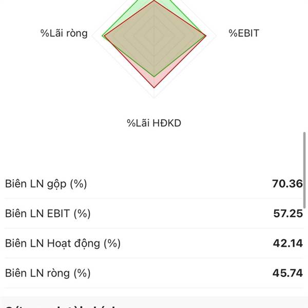 P/b 0.7 P/E 6.4 nợ/ vốn chủ sở hữu 0.5 . Biên lợi nhuận gộp cao .Ae đầu tư giá trị phải cảm ơn lái lợn có tâm đẩy về giá rẻ để húp